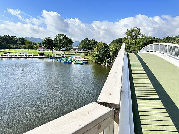 遊客們可以選擇搭乘遊湖船也可以踩天鵝船遊湖, 園內可是有18座橋梁串聯全部的環湖步道,