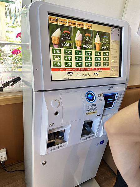 牧場知名的冰淇淋有兩種, 分別為牛奶冰淇淋及義式冰淇淋, 皆需要從販賣機點餐印出票券後,