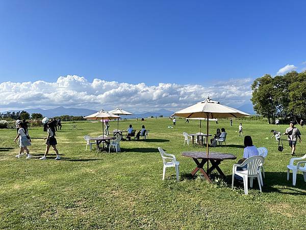 吃義式冰淇淋眺望羊蹄山美景, 農場還很貼心地準備一些可以在大草原遊玩的器具, 超適合小孩放電,