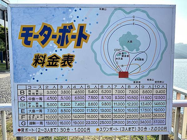 因火山噴發而形成在洞爺湖中間的四座島嶼, 分別為大島, 弁天島, 觀音島及饅頭島,