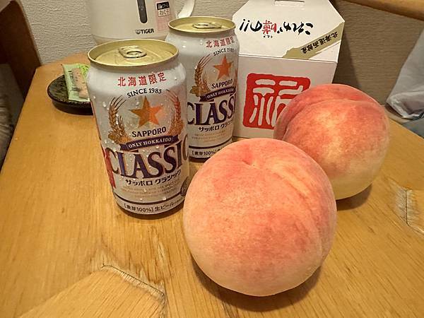 回到房間後配著水蜜桃跟下午買的烤魷魚, 飽到不行, 但超級滿足的!!