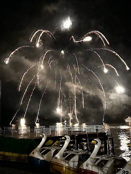若你想更近距離觀賞的華麗的煙火, 也可以自費搭乘遊覽船, 它會停泊在湖中央讓旅客們看得更盡興!!