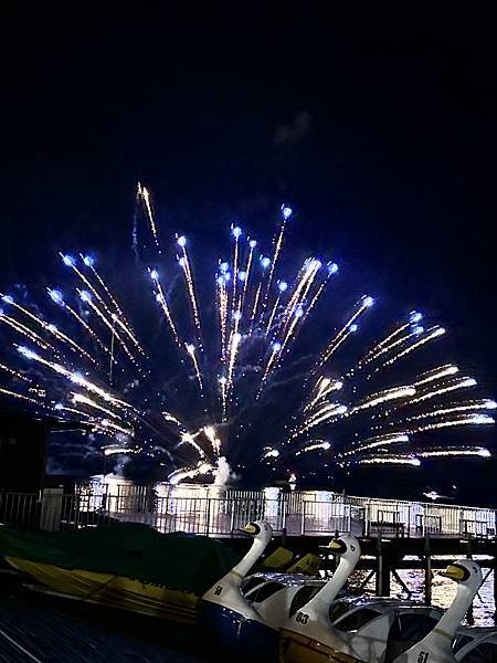 沿著湖岸都可以欣賞到環湖的煙火秀, 所以也不需要急著在哪個地方卡位就可以愜意地欣賞到花火節,