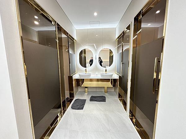這絕對不是重複放了照片, 而是浴室裡左右兩側各有一座蓮蓬頭, 反而缺了放置衣物的架子,