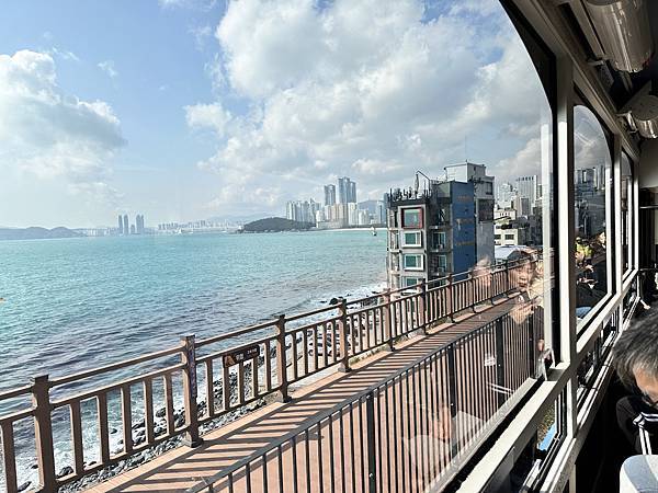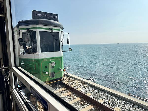 剛好遇到另一台海岸列車交會, 釜山旅遊之所以迷人, 就是在這山海交會的美景令人超迷,