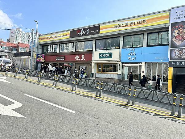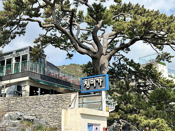 出站後到了青沙浦這個漁港小鎮往右邊走有很多餐廳, 往左邊走就是青沙浦天空步道,
