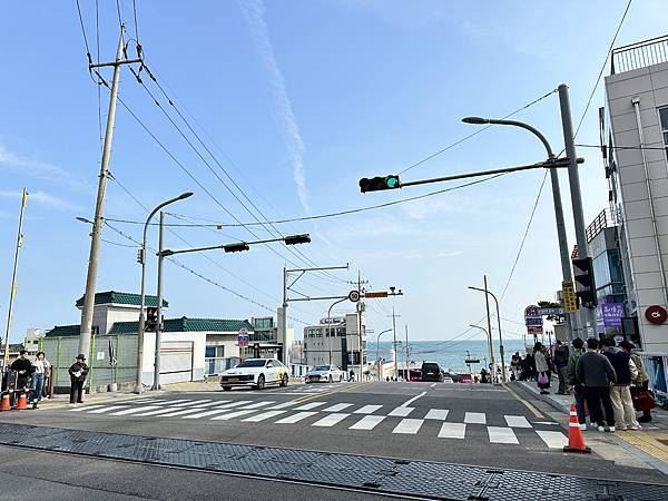 搭乘海岸列車到青沙浦站大約十分鐘而已, 出站就是大家口中說的韓版的灌籃高手平交道,