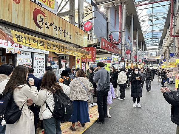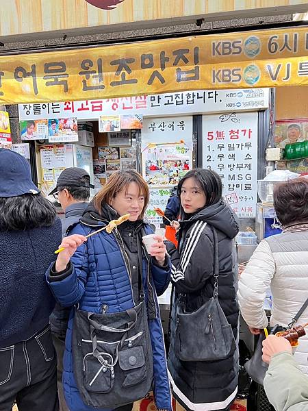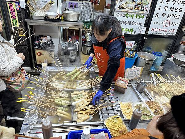 我們在井字型的市場內隨意閒逛, 也吃了韓式炸雞, 又看到這家炒年糕魚板擠超多人潮,