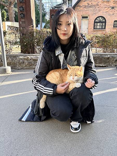 韓國偶像劇也曾經來此取景, 路途中有好幾隻很親人的貓咪, 這隻橘貓一直蹭人討摸還坐在我家妹妹身上不肯走呢!!