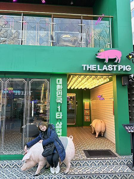 前往東城路商圈的周遭已經是商店林立, 這家應該是烤肉店吧!!豬豬太可愛了忍不住合照一張!!