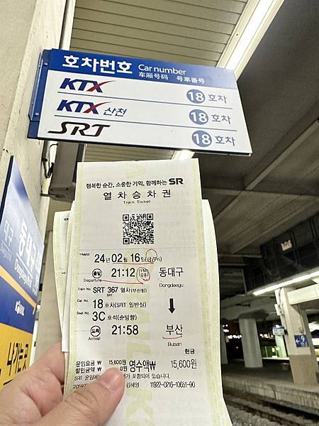 KTX與SRT都是高速鐵路,只是差在業者不同, SRT票價略微便宜一些, 依車票上的資訊很簡單就可以找到月台,
