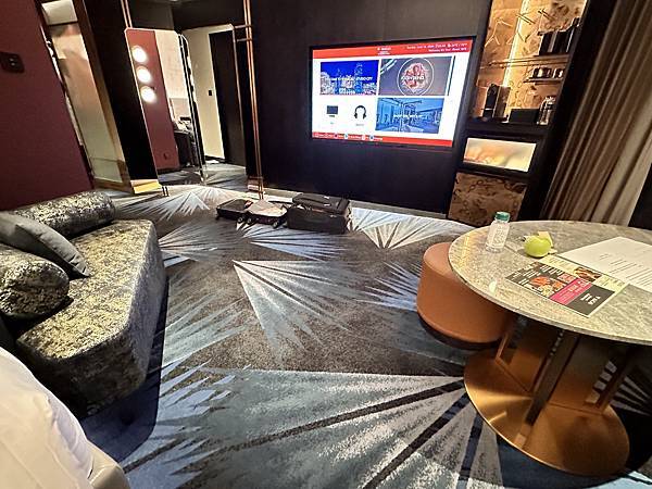 大廳的裝潢設計就像是一座豪華攝影棚, 簡直像是來到了好萊塢劇院, 入口處還有提供迎賓飲料,