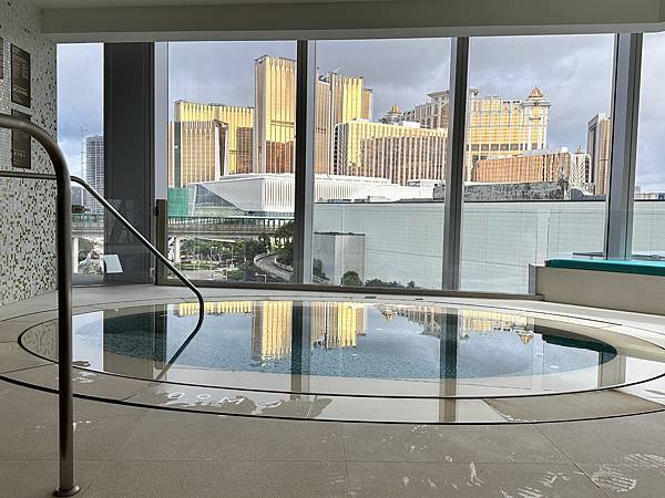 連溫水SPA區也有設計落地窗讓你欣賞豪華的飯店, 真的是非常享受!!