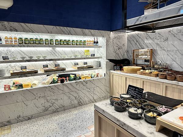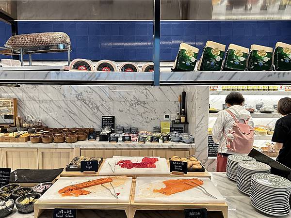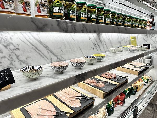 取餐區有分熟食區, 冷藏室及輕食區, 愛吃甜點的我立馬先查看甜點吧, 咖啡還是帥哥廚師手沖的喔!!