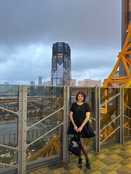 走到這法式戶外庭園真的只能驚嘆啊, 這仰角俯視新濠影匯酒店跟8字摩天輪真是壯觀極了~~