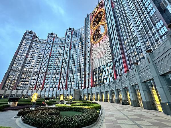 新濠影匯酒店規模實在太廣, 必須用廣角單眼相機才有辦法把整個飯店都收到鏡頭下喔!!