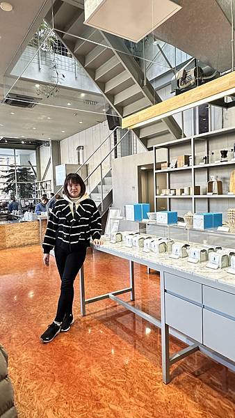 前往二樓的座位區並未開放, 後側內用區也有一區商品展示區, 會販售清澄白河藍瓶咖啡限定商品,